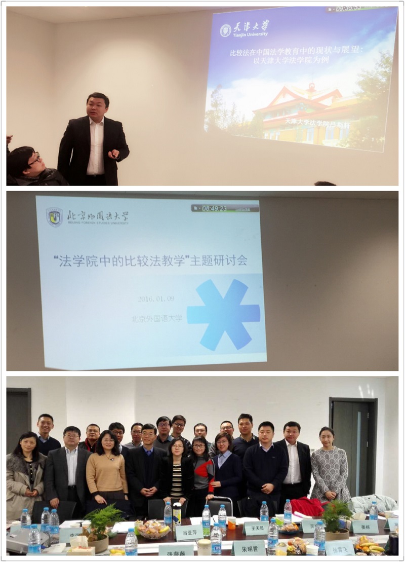 本站讯(通讯员 李朝千)2016年1月9日,中国法学会比较法学研究会主办的“法学院中的比较法教学”研讨会在北京外国语大学法学院成功召开,全国各大法学院从事本科生和研究生比较法课程教学的一线教师参与研讨。我院吕斯轩博士在会上做了主题为“比较法在中国法学教育中的现状与展望”的发言。他以天津大学法学院为例,从国外情况、国内现状和未来展望三个方面来介绍中国比较法教学。首先,吕老师介绍了北美、欧洲和印度的比较法教学理念和存在的问题,接着他针对目前比较法教学在中国存在的语言障碍、师资缺乏以及资料较少的问题,提出通过与外语老师分工合作、建设高水平比较法学教师队伍以及完善教学科研资料来促进中国比较法教学的未来发展。会上,吕斯轩博士还向与会专家和学者介绍了天津大学法学院外国法与比较法研究中心的建立与发展情况,并期待与会专家学者与天津大学法学院外国法与比较法研究中心加强比较法领域教育教学与科学研究方面的合作,共同推进我国比较法学学科的发展。