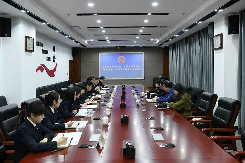 (通讯员 郭金石)2024年1月4日,天津大学法学院孙佑海院长、杨健副院长、杨宁副教授、郭金石老师等一行4人赴西青区人民检察院交流座谈。双方举行了全面共建合作签约仪式。天津市西青区人民检察院党组书记、检察长张云琦,党组副书记、副检察长郜建明,党组成员、副检察长刘建新,党组成员、副检察长刘海东,党组成员、政治部主任石凤美,副检察长孙延忠等出席仪式。