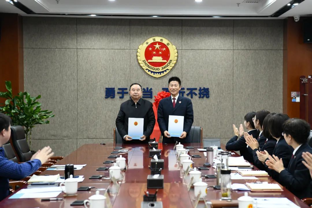 孙佑海、张云琦代表双方签订了《检校共建》协议,并为检校共建基地揭牌。