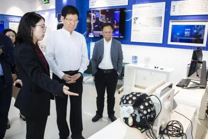 王其江一行首先参观了天津大学“兴医之路”主题教育馆。孟琳教授介绍了医学院近年来在专家团队、科研成果、人才培养等方面取得的进展。王其江在听取有关技术成果的介绍后,就人工智能与技术发展、科研伦理等问题与教师代表进行讨论。