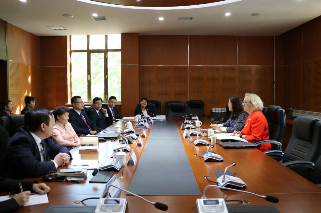 接下来,Loraine Phillips与学院部分教师进行座谈,双方围绕教师自身发展、教学改革、教学评价体系以及学生教育教学等方面展开了深入探讨。杨雅婷老师在谈及自身感受时表示,她作为一名已经工作7年的教师深深感受到了学校对于教职工在教学、科研和生活上的全方位保障和关切,同时她也很享受学院宽松的工作环境和氛围;薛杨老师动情地向Loraine Phillips介绍了自己作为“土生土长”的天大人从学生到教师的角色转换和成长感悟,他表示,对于天津大学实事求是、扎实肯干的学风教风以及老教师们的言传身教感触颇深,助课听课制度等教学改革措施的推行对于青年教师教学工作的开展也十分有利;曾艳老师详细地向Loraine Phillips介绍了学院教学评价体系的运行流程;田亦尧老师在和Loraine Phillips谈及学生教育教学工作的开展时提到,学院贯彻“以学生为中心”的理念,推行本科生个人导师制,以更好地保障学生专业知识的学习;吕斯轩老师和孙皓老师分别就法学院产出和教学模式创新的问题发表了自己的观点。Loraine Phillips在和各位老师充分交流后表示,学校和学院的教师保障措施、教学改革、教学模式创新等给她留下了深刻的印象,这将有力地推动学院建设和教学工作的开展。