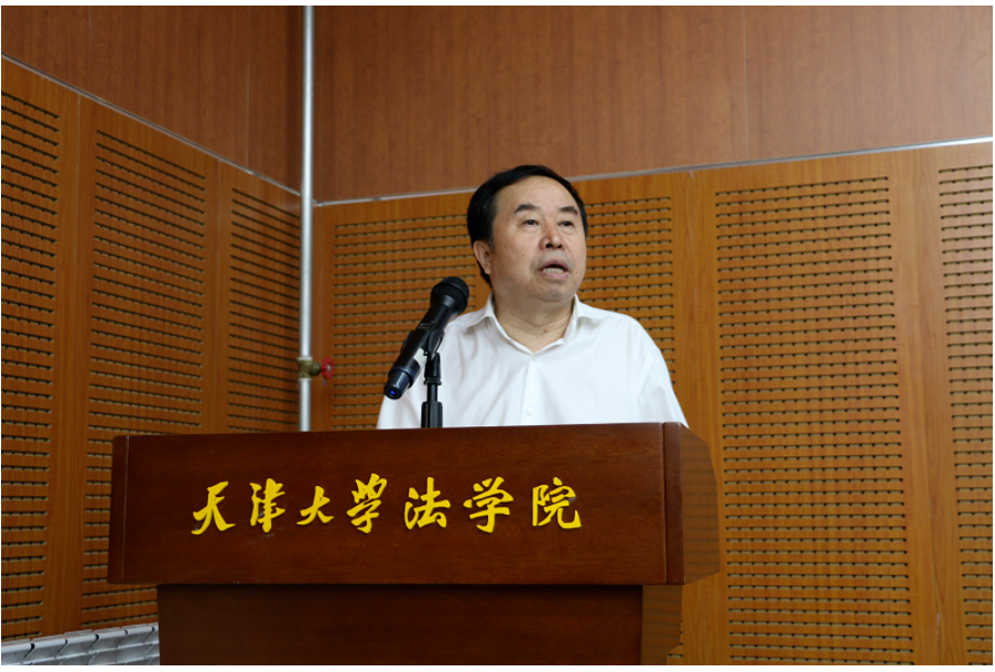 孙佑海院长讲话。他指出,天津大学法学院五年来始终以复兴北洋法学为己任,遵循“高起点、入主流、有特色、国际化”的办学方针,严守“崇法厚德、致公天下”的院训,攻坚克难、励精图治,取得了一系列成绩,这与法学院全体师生的共同努力是分不开的。孙院长以北洋法科杰出校友张太雷等为例,介绍他们的生平事迹,借此对毕业生提出向杰出校友学习的四个要求,即学贯中西、才华出众、学以致用、报效国家。孙院长又从工作和生活层面嘱托同学们:一、政治成熟,永做党的人;二、专业出众,成为组织离不开的人;三、遵纪守法,不辜负党组织和家庭的期望。孙院长最后勉励各位毕业生以习近平新时代中国特色社会主义思想武装头脑,毕业后在自己的工作岗位上全力展现天大法学人的风采,为国家和社会建设作出自己的最大贡献。