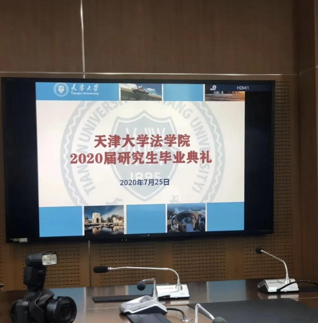 (通讯员 刘英 摄影 丁宝刚)2020年7月25日,天津大学法学院举办2020届非全日制研究生毕业典礼。出席典礼的有天津大学法学院院长孙佑海,副院长杨健,研究生教务杨瑷嘉老师以及学工办和团委老师等。毕业典礼由杨健副院长主持。