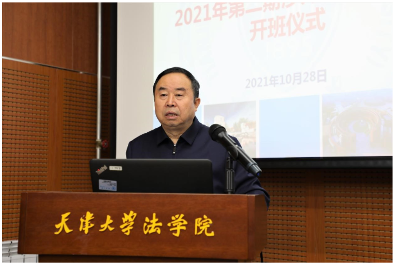 孙佑海院长代表天津大学法学院对天津市律师协会的各位领导和参加培训的各位学员表示热烈欢迎。他指出,自第一期培训至今已时隔6月,第二期培训如约开班。随着我国全方位对外开放的不断推进,维护国家经济安全和发展利益、加强企业公民权益保护的任务越来越艰巨,在这个背景下,开展涉外律师培训,对加快涉外律师人才培养,推动涉外法律服务业发展具有重要作用。长期以来,天津大学法学院一直致力于培养能够担当民族复兴大任的国际化人才。天大法科从创建之日起,就坚持面向国际开放办学的思路,培养了一大批“学贯中西”的革命家、法学家和教育家。今年是天大法学院复建七周年,在最近的“2021软科中国最好学科排名”中,天津大学法学学科位列第25名,我们始终坚持“高起点、入主流、有特色、国际化”的办学方针,不断加强对外合作交流。2020年,牵头发起建立法学教育创新联盟,就法学教育创新改革形成重要共识,我们承办了法学教育创新联盟涉外法治人才培养高端论坛,和来自二十余所高校的法学专家学者围绕涉外法治人才的培养方式、学科设置、教学模式等进行了深刻交流。此外,在国际交流方面,学院承办了“世界诉讼法大会”、“世界智能大会”,与耶鲁大学、美国哥伦比亚大学、悉尼大学、日本早稻田大学等多所国际高校开展交流合作,聘请了来自美国、韩国等国的专兼职外籍教师,培养了一批具有家国情怀和国际视野的高素质复合型拔尖创新人才,得到了社会各界的广泛认可。孙佑海院长指出,法学院高度重视此次培训,与市司法局、市律协充分沟通交流,诚挚欢迎各位参训律师学员对法学院工作提出宝贵意见。