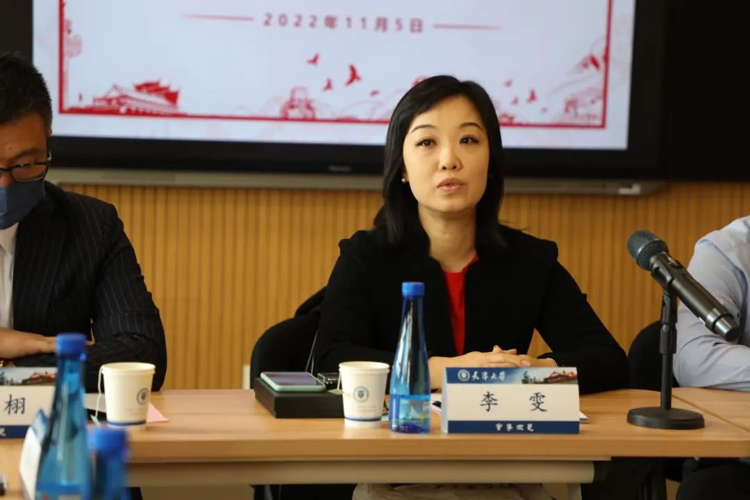 李雯副会长讲话。她指出,涉外法律人才培养是一项国家战略,市律协始终把涉外人才培养当作重点工作任务。市律协与天津大学法学院保持着密切良好的交流合作关系,双方签订了“双师互进”合作协议,合作举办了三期涉外律师培训班。依托法学院优质的教育资源和雄厚的科研力量,市律协将与天大法学院继续携手共进,坚持新发展理念,构建新发展格局,以国家发展需要和社会需求为导向,加快培育新时代涉外律师领军人才,推动涉外法律服务业发展,推动更高水平的对外开放和经济高质量发展。希望各位律师珍惜学习机会,在涉外律师人才培养中发挥引领示范作用。