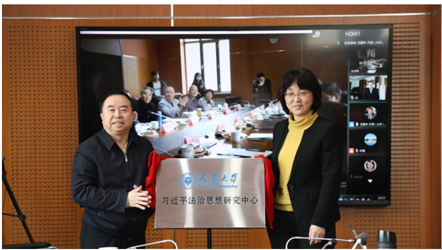 张俊艳处长与孙佑海院长共同为天津大学习近平法治思想研究中心揭牌。