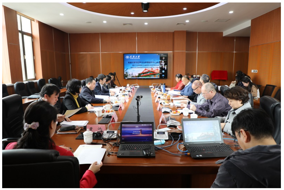 (通讯员 郭金石 摄影 李泽鹏)3月14日,天津大学习近平法治思想研究中心在天津大学法学院隆重成立。来自北京大学、清华大学、中国人民大学、浙江大学、武汉大学、中国政法大学、南京大学、厦门大学、中央财经大学、中山大学、中央民族大学、中国海洋大学、对外经济贸易大学、南开大学、郑州大学、中共中央党校、中南财经政法大学、西南政法大学、河北工业大学、浙江工业大学、大连海事大学、河北经贸大学、天津财经大学、天津师范大学、中共厦门市委党校等高校的四十余位专家学者齐聚一堂,共同见证中心的成立。天津大学人文社科处处长、文科建设办公室主任张俊艳,法学院院长孙佑海,法学院党委书记杨欢,法学院副院长杨健,法学院张恒山卓越教授、熊文钊讲席教授、王建学英才教授、魏健馨教授、董妍副教授等出席。