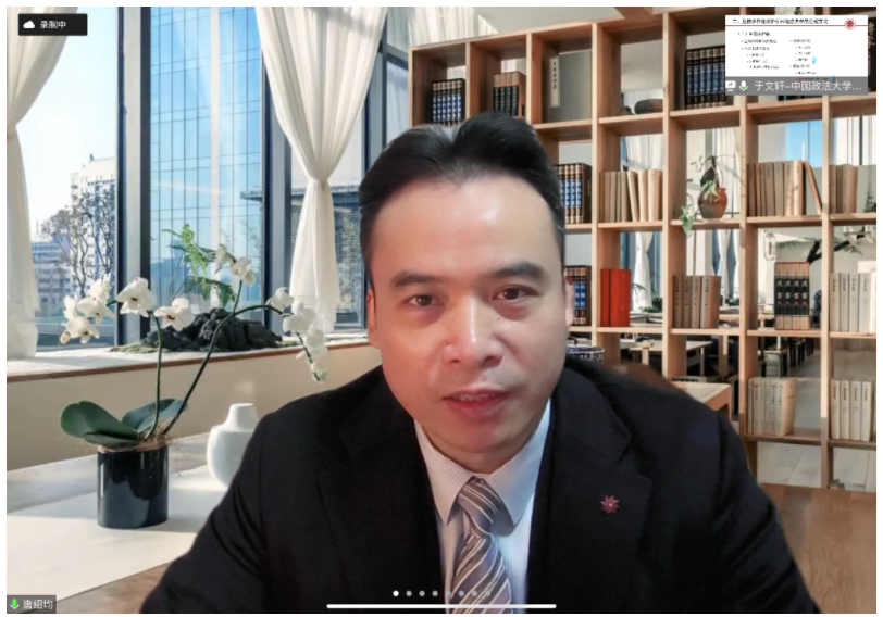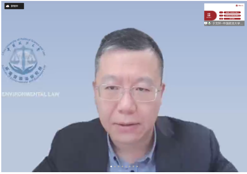 中国法学会环境资源法学研究会副会长、环境纠纷多元化解决机制专业委员会副主任委员、中国政法大学环境资源法研究所所长于文轩教授以“环境法典中的生物多样性保护”为主题展开报告。他从总则编、生态保护编、法律责任编入手,论证了生物多样性保护在环境法典中的呈现方式。他强调,应当从生物多样性保护管理体制、生物多样性保护与生态保护、生物多样性保护与生物安全保障三个层面完善我国生物多样性法律体系。