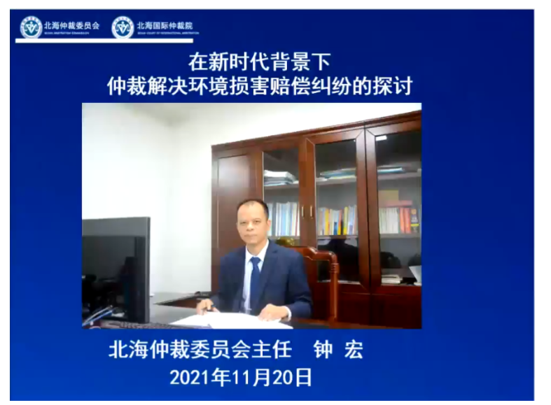 北海仲裁委员会钟宏主任以“在新时代背景下仲裁解决环境损害赔偿纠纷的探讨”为题进行分享。他指出,我国现有的协商、调解、诉讼等环境损害赔偿纠纷机制存在局限性,进而分析了环境纠纷中适用仲裁机制的可行性。他提出,仲裁具有独特价值,并详细论证了仲裁在环境损害赔偿纠纷的具体适用。