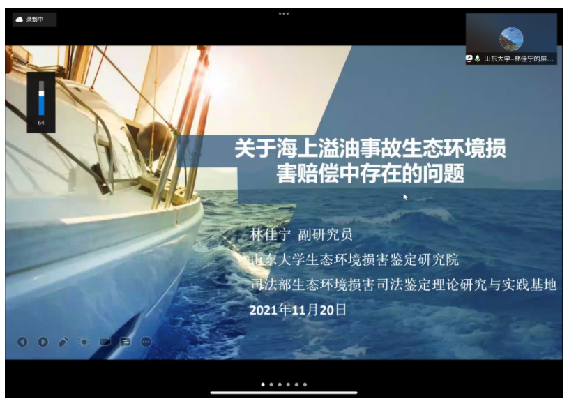山东大学生态环境损害司法鉴定研究院林佳宁副研究员围绕“海上溢油事故生态损害赔偿”展开汇报。她详细介绍了黄海“412?交响乐”轮溢油事故的具体情况,并通过与国外溢油事故损害赔偿典型案例的对比,指出我国高额的索赔费用和低额的责任限制基金限额存在冲突。她建议,应当通过法治方式化解上述矛盾,实现生态环境利益保护。
