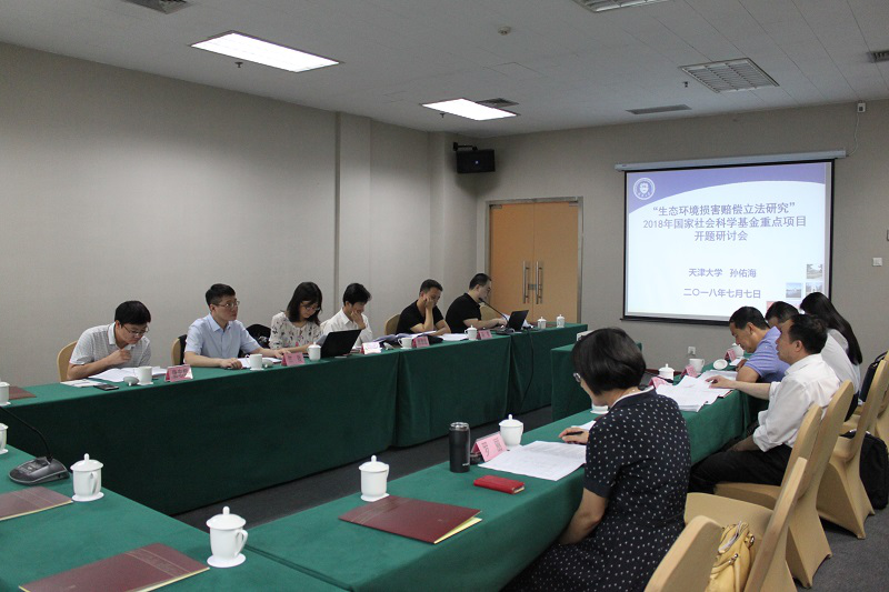 (通讯员 王甜甜 摄影 王操)2018年7月7日,由孙佑海教授主持的2018年国家社会科学基金重点项目“生态环境损害赔偿立法研究”开题研讨会在北京召开。课题主持人、天津大学法学院院长孙佑海,生态环境部政策法规司司长别涛,全国人大环资委法案室副主任王凤春,最高人民法院中国应用法学研究所环境司法研究中心主任韩德强,生态环境部环境规划院环境风险与损害鉴定评估研究中心副主任於方,水利部发展研究中心处长唐忠辉,北京理工大学教授罗丽,中国矿业大学副教授程琳琳,苏州大学副教授冯嘉,中国人民大学教授竺效等参与会议研讨。