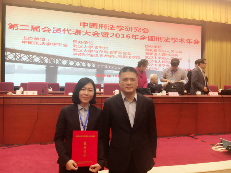 2016年10月15日,中国刑法学研究会第二届会员代表大会暨2016年全国刑法学术年会在武汉召开。会议上,齐文远副会长主持了第三届“全国刑法学优秀博士学位论文奖(2014-2016)”的颁奖。天津大学法学院杨宁老师的博士论文《交通危险犯研究》荣获二等奖。