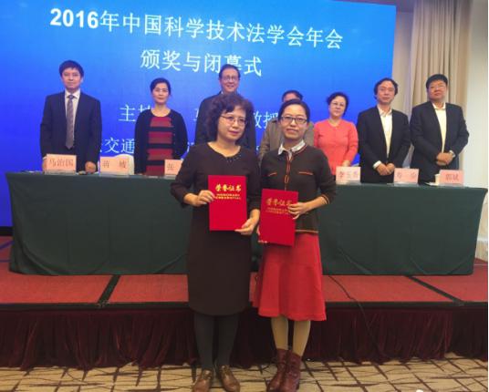 在本次会议上,法学院何悦教授荣获中国“科技法学奖”——突出成就奖。