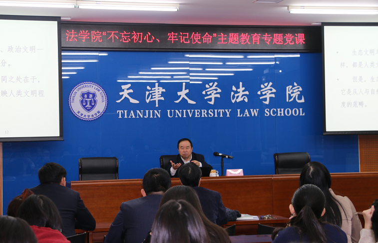 (通讯员 张丹)10月18日上午,法学院开展“不忘初心、牢记使命”主题教育专题党课,院长孙佑海教授为师生讲解了自己学习习近平生态文明思想的体会。法学院全体教师和研究生参加,会议由学院党委书记杨欢主持。
