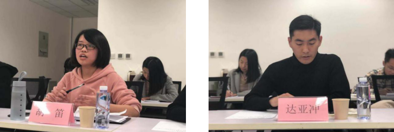 2017级硕士生第二党支部支书胡笛同志围绕“如何优化党支部设置”这一主题,以精仪学院“纵向党支部设置”模式为例,结合法学院的实际情况,提出了以专业为单位、以研究基地为依托的创新性党支部设置方案。2016级硕士生第二党支部组织委员达亚冲同志以“如何联系实际深化理论学习”为题,着眼于我党“理论联系实际”的优良作风,从树立解决问题的意识、提高化解矛盾的能力、培养创造性开展工作的能力三个方面分享了自己的心得体会。
