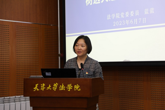 蓝蓝副院长的党课题目是“树远大理想,立报国之志”,她从为何要树远大理想、北洋法科优秀校友的榜样力量、当代大学生如何树远大理想三方面进行讲解,希望同学们以所学所能报效国家、将小我融入大我,争做新时代有理想有抱负的优秀青年。