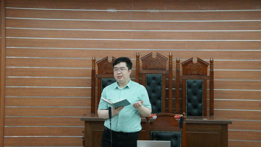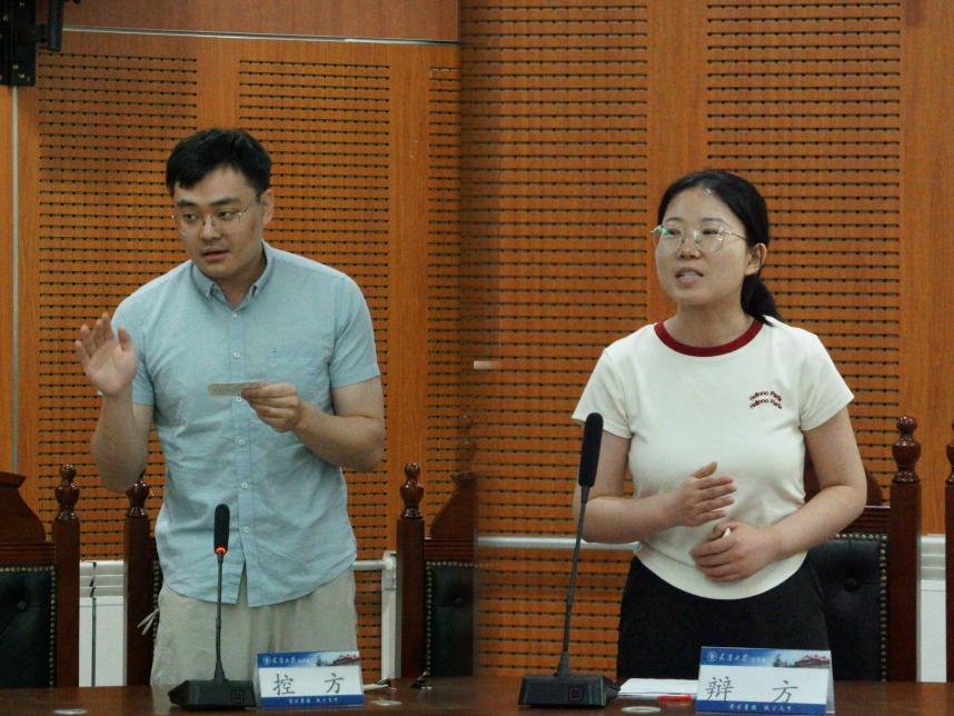 河北区人民检察院副检察长林晓萌、河北区人民检察院检察委员会专职委员黄玮、河北区人民检察院第二检察部副主任汪杰,天津大学法学院副院长杨健、天津大学法学院讲师王沛然共同观摩指导。来自天津市河北区人民检察院与天津大学法学院的共计8名选手参加本次比赛。天津大学法学院研究生张雯主持活动。