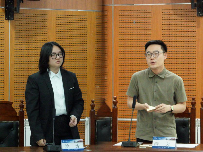 第二轮比赛由控方天津大学法学院学生蔺希敏对阵辩方河北区人民检察院检察官刘皓轩。