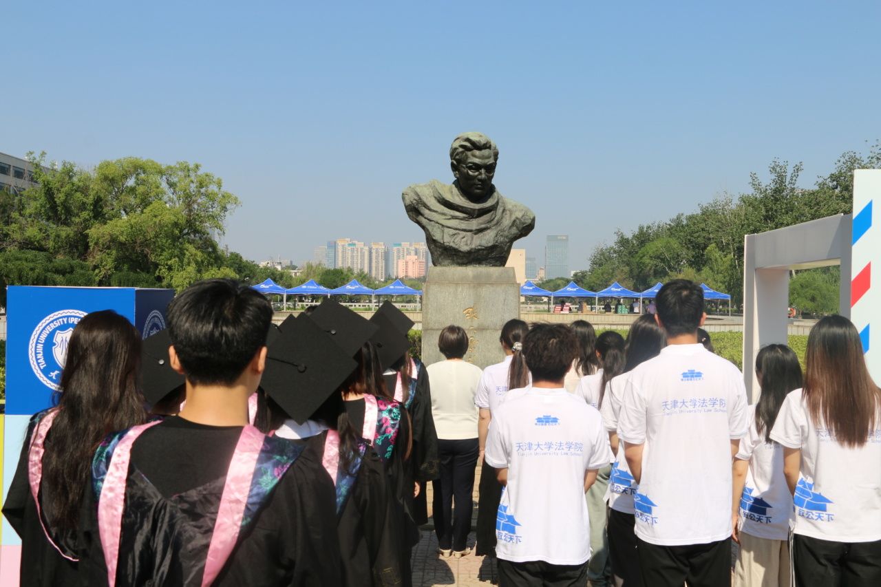新发展党员代表、法学院2022级本科生丁宁首先表达了对张太雷同志的缅怀与崇敬之情,回忆了自己积极向党组织靠拢的点滴经历。代表新发展党员表示要向张太雷、王宠惠等北洋法科优秀校友学习、笃行“实事求是”的校训和“崇法厚德、致公天下”的院训、坚定初心,不断向前。呼吁大家望前驱之英华卓荦,应后起之努力追踪,与党同心、与国同频、与时同行,立志用自己的专业所学力所能及地为社会法治发展贡献青春力量。