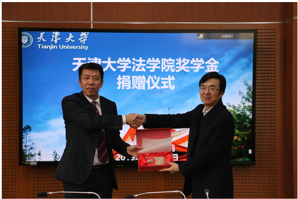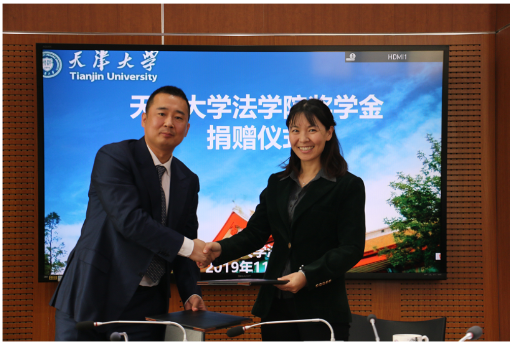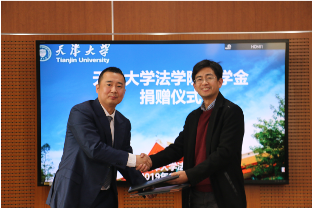 天津四方君汇律师事务所吕家鹏律师与天津大学北洋教育发展基金会签署捐赠协议。