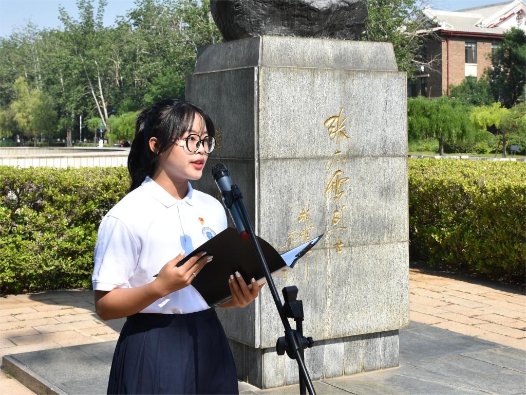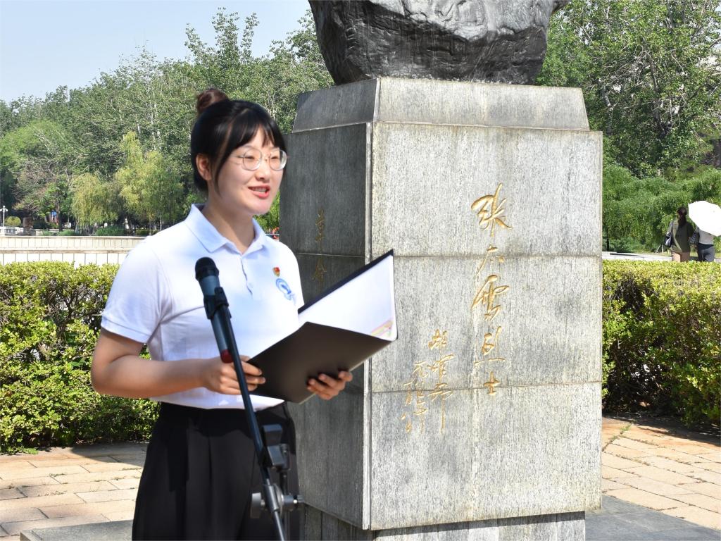 党员发展的道路上,离不开优秀党员的指导和帮助,党员代表、法学院 2021 级硕士生第二党支部书记丁文倩回顾了入党以来的思想历程,从遇见光到追随光,从被照亮到发出光亮,她一直在追寻党的脚步。她表示,在太雷像前仪式感满满的集中宣誓,既是对入党初心的呼唤,又是对未来步履的启示,希望各位青年党员继续踔厉奋发、砥砺前行。