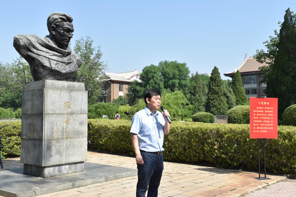 接下来,天津大学第十六期太雷班学员、法学院研究生尹卓扬讲授微党课,与大家一起重温太雷的光辉事迹。张太雷同志身上集中体现了坚定不移的理想信念、忧国为民的家国情怀、敢为人先的首创精神、勇于献身的奉献精神,百年来激励着一代代青年矢志奋斗、奋力前行。作为青年的我们,要传承红色基因,赓续红色血脉,用青春的能动力和创造力激荡起民族复兴的澎湃春潮,用青春的智慧和汗水打拼出一个更加美好的中国。