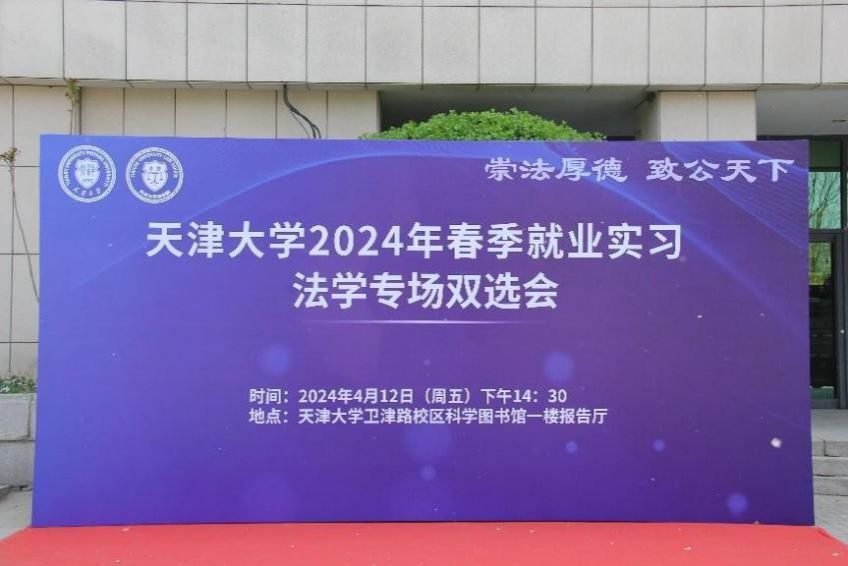 为响应天津市日前出台的《30条措施促高校毕业生高质量就业》,搭建企业与学生之间“小而精,专而优”的双向选择平台,天津大学于4月12日在卫津路校区科学图书馆一楼报告厅成功举办2024年春季就业实习“法学专场”双选会。
