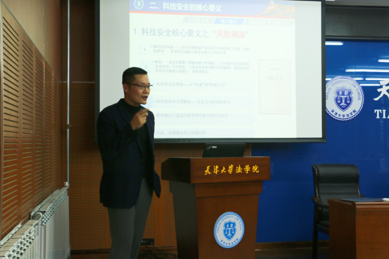 其次,薛老师就西方国家提出的“风险溯源”概念进行了讲解,并针对相关书籍《风险社会》表达了自己的看法,他用某品牌汽车造成车主白血病的案例形象地解释了这个概念。以此表明在科技领域,我国的法律具有滞后性,中国是否能够利用制度优势管控和化解科技风险,这正是我们亟待解决的问题。