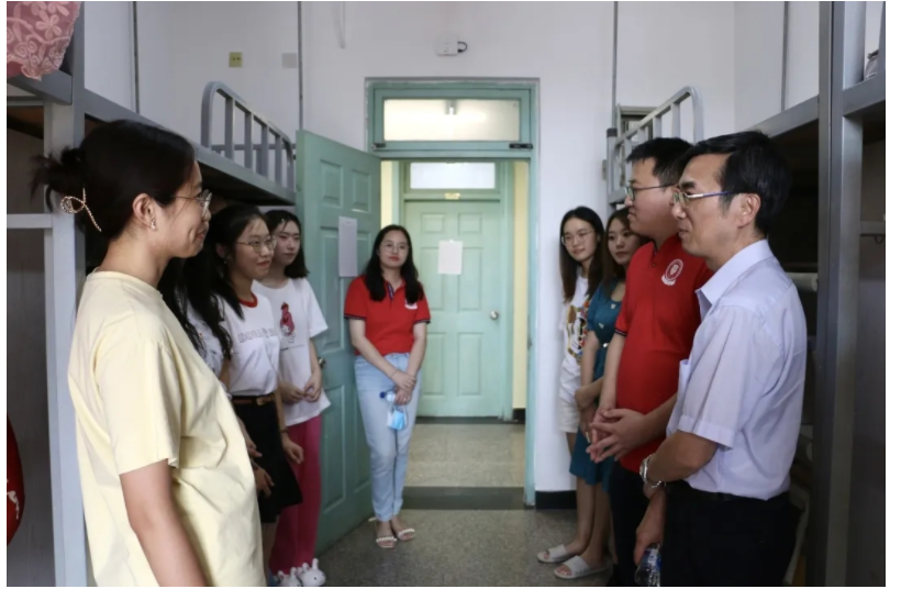 在走访过程中,杨欢书记深入每间宿舍,认真查看宿舍内的各项设施,耐心细致地和同学们交流,详细地了解每位新生的名字、家乡籍贯,对新生同学们以前所学的专业、对宿舍条件是否满意、对学校环境是否满意、生活上能否习惯及入校后的感受等情况进行了详细询问。他嘱咐同学们要做好相关防疫工作,注意个人防护,加强安全防范意识,谨防上当受骗。