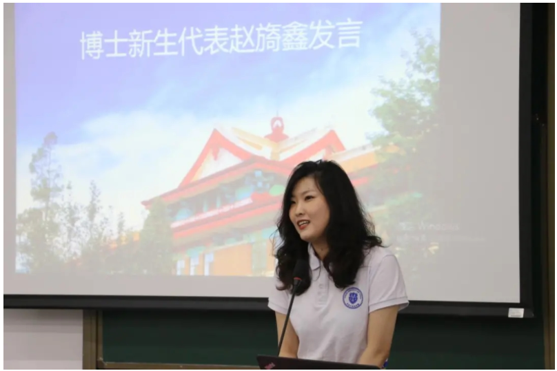 2021级博士新生代表赵旖鑫发言。她向大家分享了七年的法科学习历程:从初识法学时的好奇感,到取得一次次成功时的满足感,再到如今作为一名天大法科博士研究生的厚重使命感。希望同窗们都有“乘风好去,长空万里,直下看山河”的学术抱负;愿老师们“令公桃李满天下,何用堂前更种花”;愿法学院继续打造独具特色的学科体系、学术体系和话语体系。
