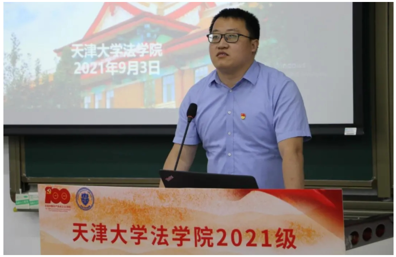 (通讯员 周新垒 左子腊 摄影 周新垒)金秋九月,丹桂飘香。9月3日下午,天津大学法学院2021级研究生开学典礼在第23教学楼108室隆重举行。天津大学法学院院长孙佑海、副院长蓝蓝、副院长杨健、法学院教研组组长和教师代表张恒山、王建学、董娟、俞风雷、刘霜、王小钢、王绍喜、薛杨、田亦尧、曹云吉,院办公室于艳春、杨瑷嘉,院团委、学工办张斯琦、付常辉出席开学典礼。典礼由法学院党委副书记、副院长张昊主持。
