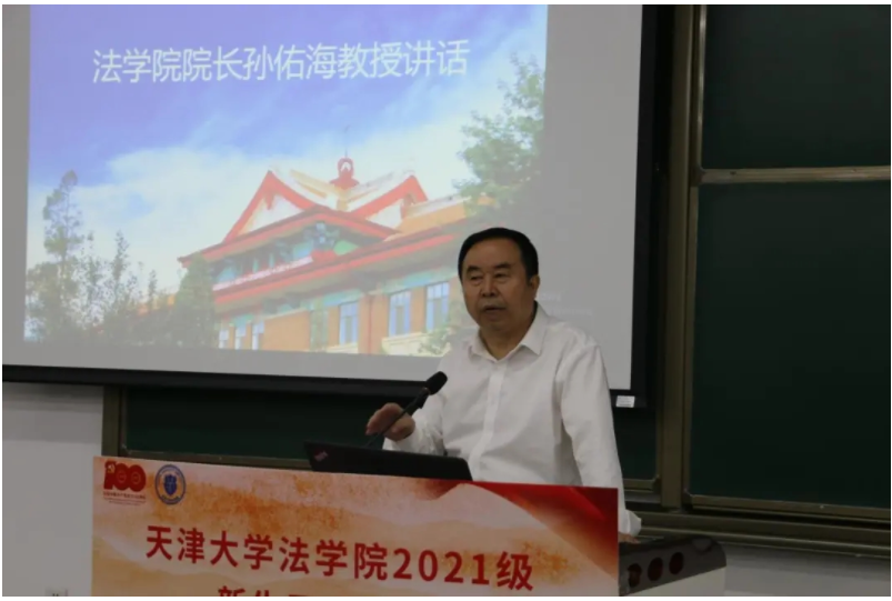 开学典礼在国歌声中拉开帷幕。在热烈掌声中,孙佑海院长的致辞围绕祝贺、担忧、祝愿三个主题展开。首先,孙院长代表法学院全体师生对2021级研究生新生的到来表示衷心的祝贺和欢迎。孙院长向同学们介绍了天津大学法学院的历史、现状和发展。法学院悠久的历史可追溯至北洋大学堂“四大学门”之一的律例学门,先后培养出了革命先驱张太雷、法学大家王宠惠等先贤。法学院复建以来,学科建设不断完善,在人才培养、科学研究、队伍建设等方面取得了显著进步,得到了党和国家领导人的高度评价,取得了社会的广泛认可。现在进入法学院复建的第七年。法学院将秉承中华民族伟大复兴的历史使命,开启学院发展建设的新征程。