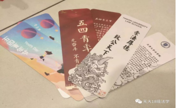 支部围绕法学这一关键词,分别从法的起源、法学院院训和学科特点三方面,设计了以獬豸为主体的支部徽章、院训钥匙链、自己设计的书签和自创团扇。以具有法学特色的物件向外界宣传自己。
