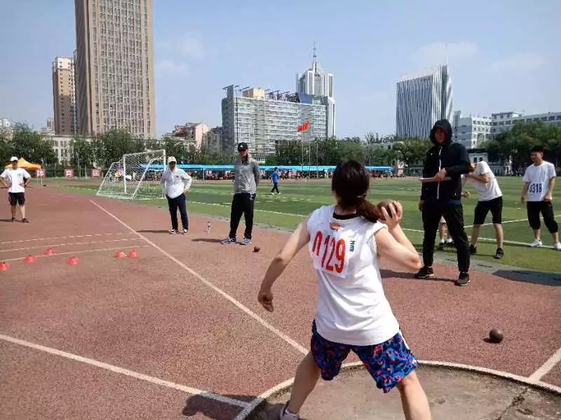 回身,推出;后仰,抛掷。每一次球从手中飞离,画出道道美丽的弧线。铅球比赛中,周洁发挥出色,取得了第一名。