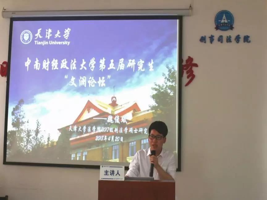 作为一名参与北洋法科重建发展并期待其能早日重现辉煌的法学院研究生,魏俊斌从入校以来就深知提高科研写作能力的重要性,并立志要为学院建设发展贡献自己的一份力量。两年来,他先后在《情报杂志》、《山东警察学院学报》、《理论探索》、《南京航空航天大学学报(社会科学版)》等CSSCI、中文核心学术期刊上发表论文6篇,全国性学术会议期刊论文6篇(其中优秀论文奖3篇)。2018年4月,他代表天津大学法学院受邀参加中南财经政法大学第五届研究生“文澜论坛”,他的论文也在全国556篇硕士生稿件中脱颖而出获得优秀论文奖,并有机会作主题发言,积极向全国高校传递北洋法科的声音。