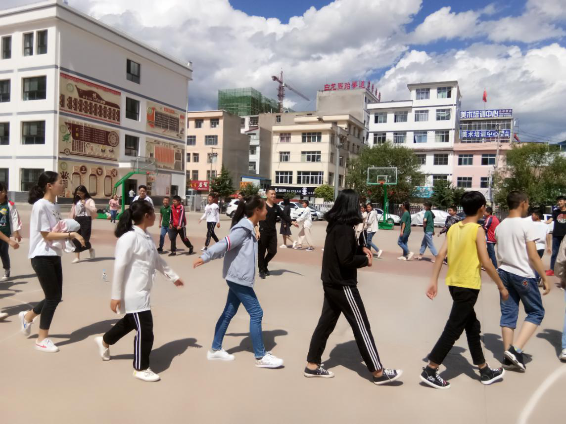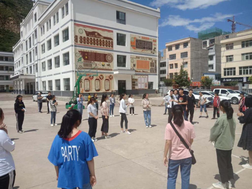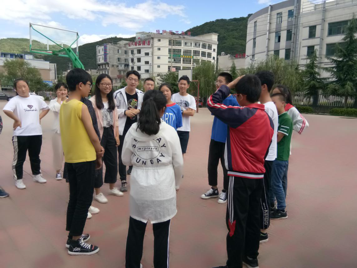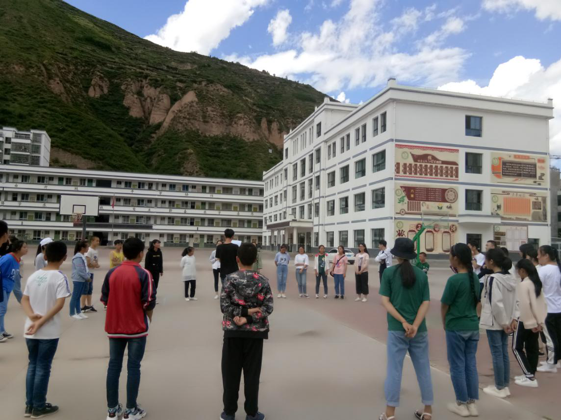座谈会后,实践队员与来自宕昌县的30名初二学生第一次见面。首先,实践队队员与同学们分别自我介绍,彼此间有了初步的了解。接着,队员们分组与同学们开展破冰游戏。在简单的游戏中,同学们从最初的拘谨到逐渐消除紧张,和实践队员玩成一片,操场上充满欢声笑语。通过游戏,同学和队员们更快熟悉彼此,拉近彼此的距离。