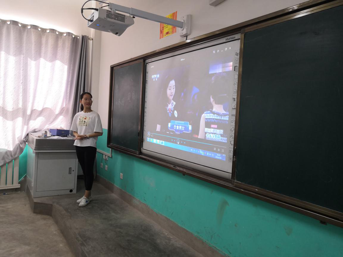 破冰环节后,法学院2018级本科生张艳艳为同学们上了一堂介绍天津、规划生涯的特色课程。作为走出宕昌到天津大学求学,后回到家乡支教的土生土长的宕昌人,她结合自己在天津的学习和生活情况,所见所闻,向和她有着类似成长背景的弟弟妹妹们介绍了天津以及天津大学的建筑、文化等情况。在这个过程中,同学们都表现出了极大的兴趣和热情,听到天津大学每学期都为在校学生免费发放不同种类的水果时,他们连声赞叹。观赏天大校花海棠的视频时,许多同学兴奋地表示自己见过海棠花,并分享自己家乡的县花。