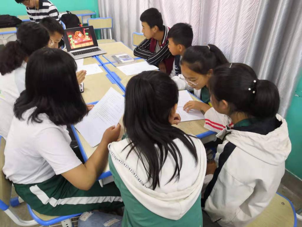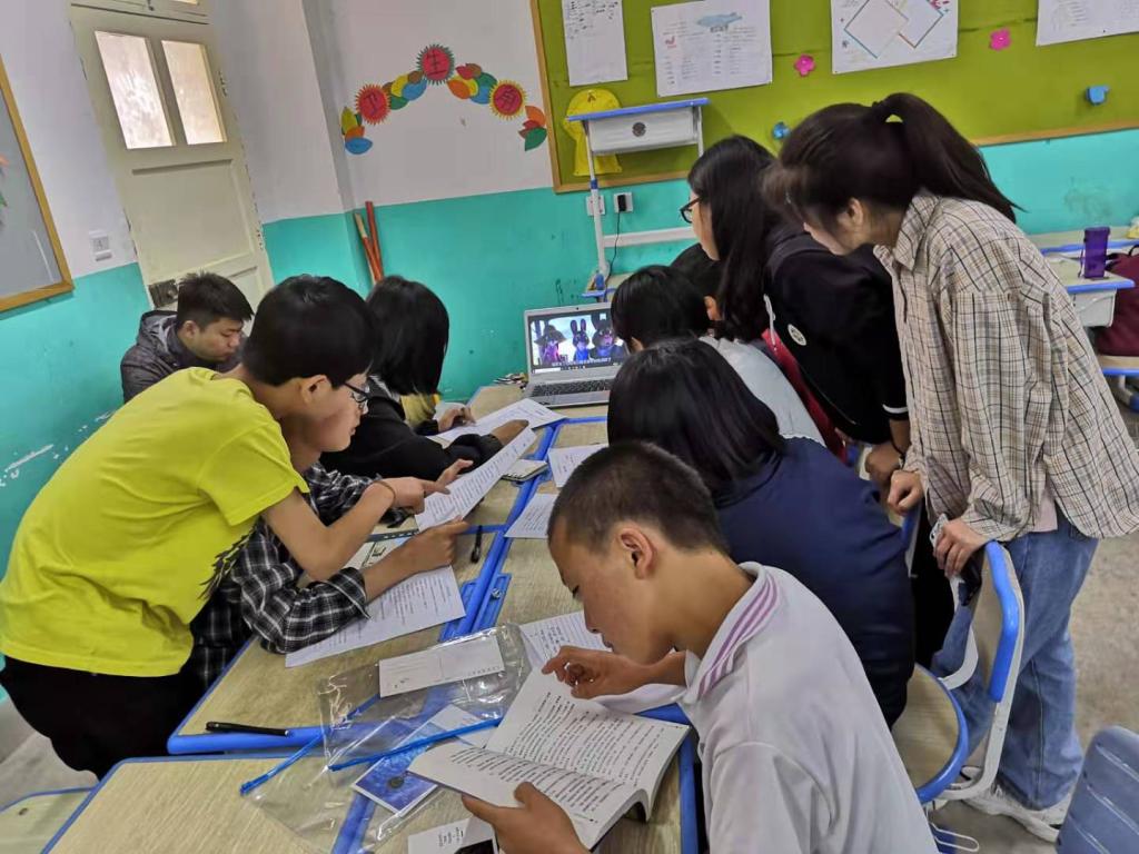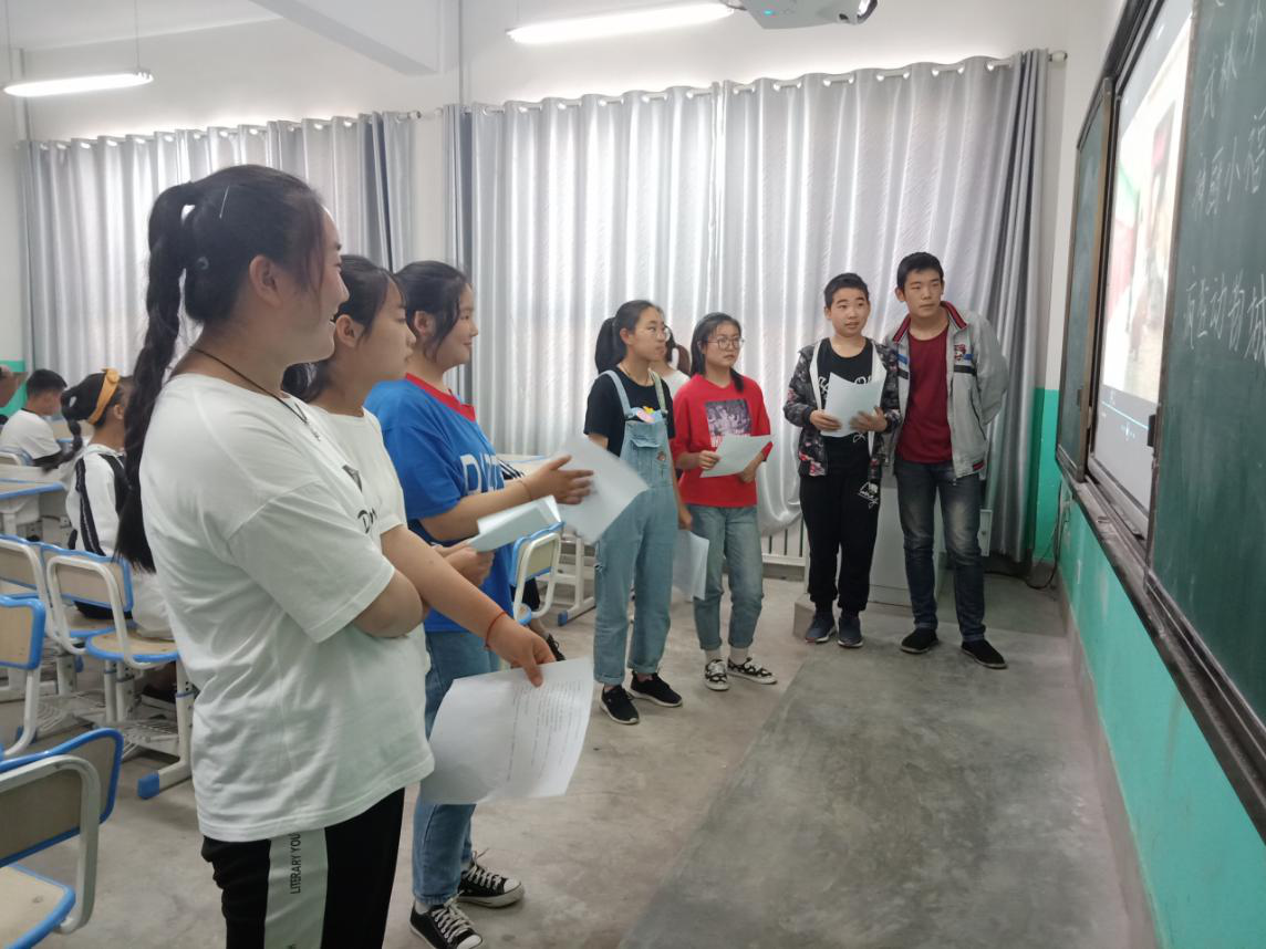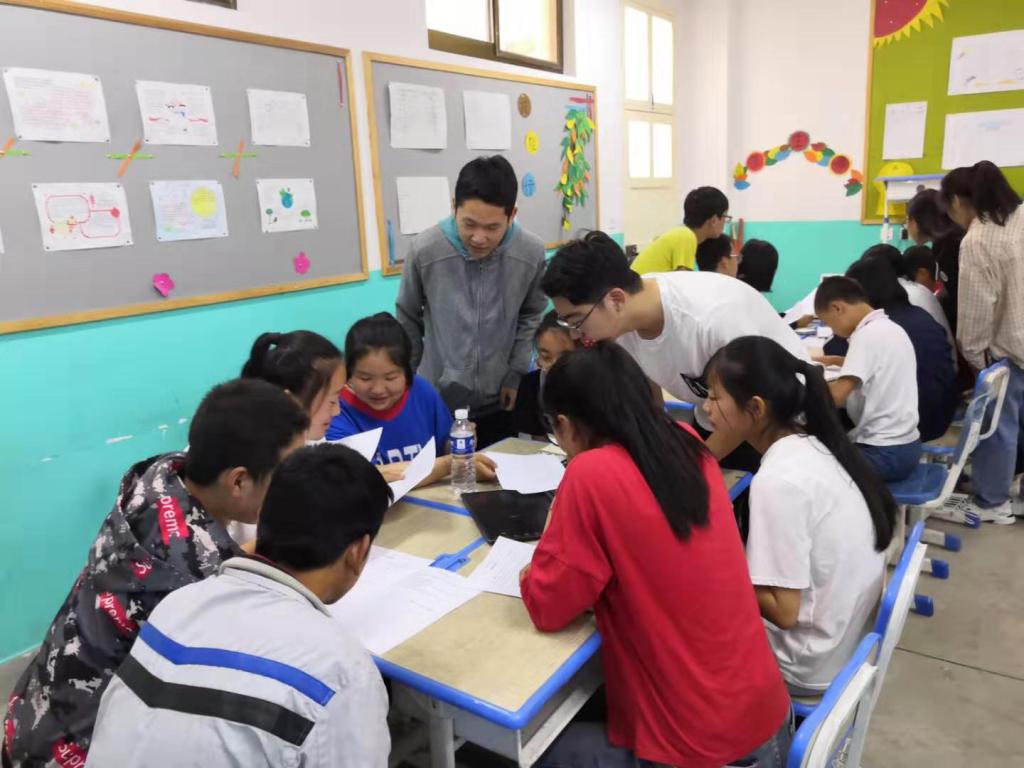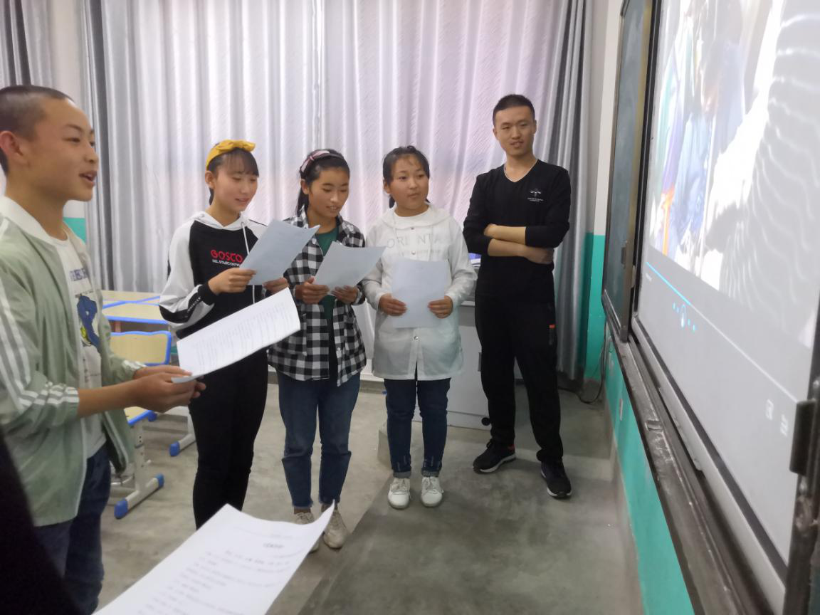 实践队队员联系当地学校特有的戏剧社开展了一节影视作品配音特色课程。实践队队员将同学分为了4个小组,布置不同的影视作品配音任务。在短短的25分钟内,各个配音小组进行了角色分配,熟悉台词,配音尝试,合作完成配音等多项任务。在这过程中,或许存在台词不熟练,情感投入不够等问题,但是通过组员之间的相互配合和相互帮助,在最后的配音比赛中,他们均呈现出了最好的一面。准确无误的台词表达,恰到好处的配音时间,融入角色的情感输出……这一切离不开团队合作,而这也是此次课程的核心所在。