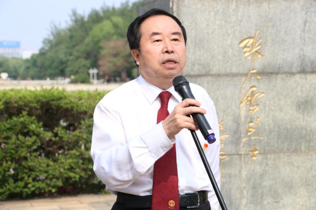 孙佑海、杨欢、杨雅婷、门昶亮代表学院广大师生向张太雷烈士像敬献花篮。
