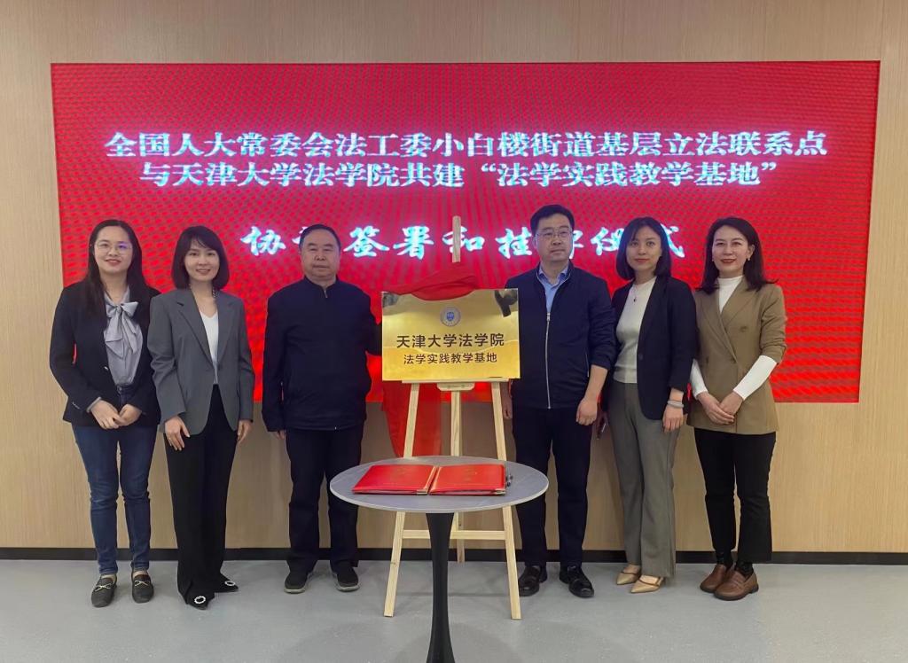 (通讯员:尹卓扬 张斯琦 摄影:张昱涵)2023年4月13日,天津大学法学院与全国人大常委会法工委小白楼街道基层立法联系点举行“法学实践教学基地”协议签署和挂牌仪式。法学院院长孙佑海,法学院党委副书记杨漫路,天津市和平区小白楼街道党工委书记杨熠,全国人大常委会法工委办公室人事处处长、小白楼街道党工委副书记(挂职)张晓莹,和平区人大小白楼街道工委办公室主任郭嘉伟出席仪式,法学院学工办副主任、团委副书记张斯琦及本硕博优秀学生代表共同参加并进行座谈交流。