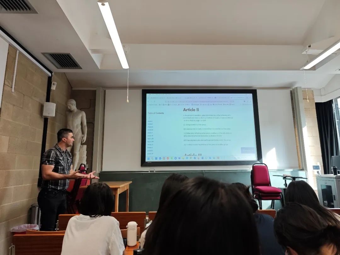 在剑桥大学交流期间,天津大学法学院访学团深度参与由剑桥大学国际法教授主讲的当代国际法前沿问题课程,聚焦国际司法实践与全球治理热点展开沉浸式学习。课堂上,师生围绕国际法院(ICJ)的职能定位展开热烈探讨,结合ICJ近期发布的“应对气候变化相关义务”咨询意见,分析国际司法机构在推动全球气候治理中的作用边界、法律依据及实践挑战。天大法学学子从“人类命运共同体”理念出发,结合中国参与全球气候治理的实践经验,提出“ICJ咨询意见对完善国际气候法律框架的参考价值”,其独到的视角与扎实的理论功底获得授课教授的高度评价。