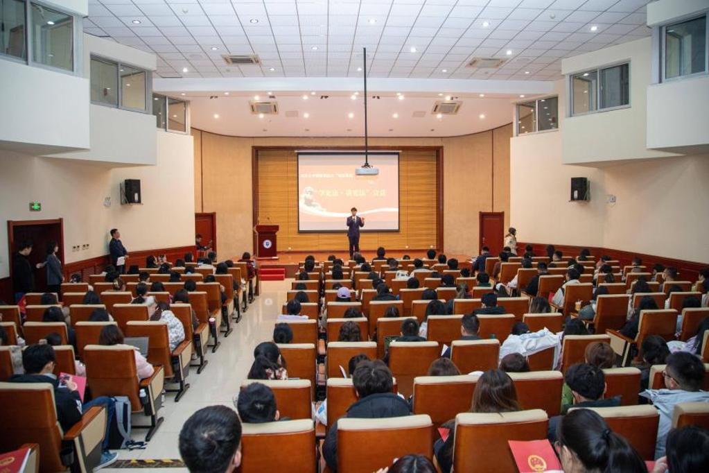 全国学生“学宪法 讲宪法”比赛全国总决赛二等奖获得者、法学院2024级本科生杨一作“学宪法·讲宪法”主题宣讲。他结合暑期赴河北玉田县支教的经历,生动讲述了如何通过“古韵今法少年行”普法课程将宪法知识融入传统文化与模拟断案中,尤其分享了当地孩子运用“宪法规定养小必养老”劝说爷爷的感人细节,展现了普法教育的现实意义,引发全场共鸣。