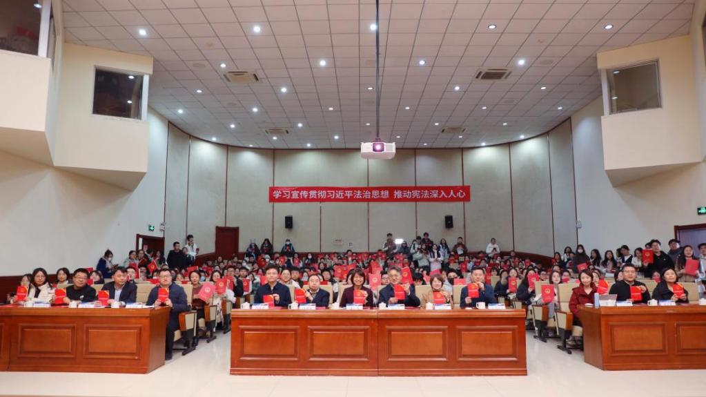 校党委常务副书记雷鸣在讲话中回顾了学校在法治建设与育人实践中取得的系列成效,并围绕“学习宣传贯彻习近平法治思想,推动宪法深入人心”主题,强调要深刻把握习近平法治思想的指导意义,将宪法教育融入育人体系,创新形式载体,培育校园法治文化,全体师生应自觉成为习近平法治思想的传播者和宪法精神的践行者。