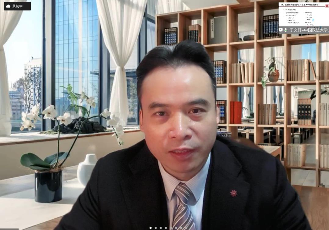 中国法学会环境资源法学研究会副会长、环境纠纷多元化解决机制专业委员会副主任委员、中国政法大学环境资源法研究所所长于文轩教授以“环境法典中的生物多样性保护”为主题展开报告。他从总则编、生态保护编、法律责任编入手,论证了生物多样性保护在环境法典中的呈现方式。他强调,应当从生物多样性保护管理体制、生物多样性保护与生态保护、生物多样性保护与生物安全保障三个层面完善我国生物多样性法律体系。