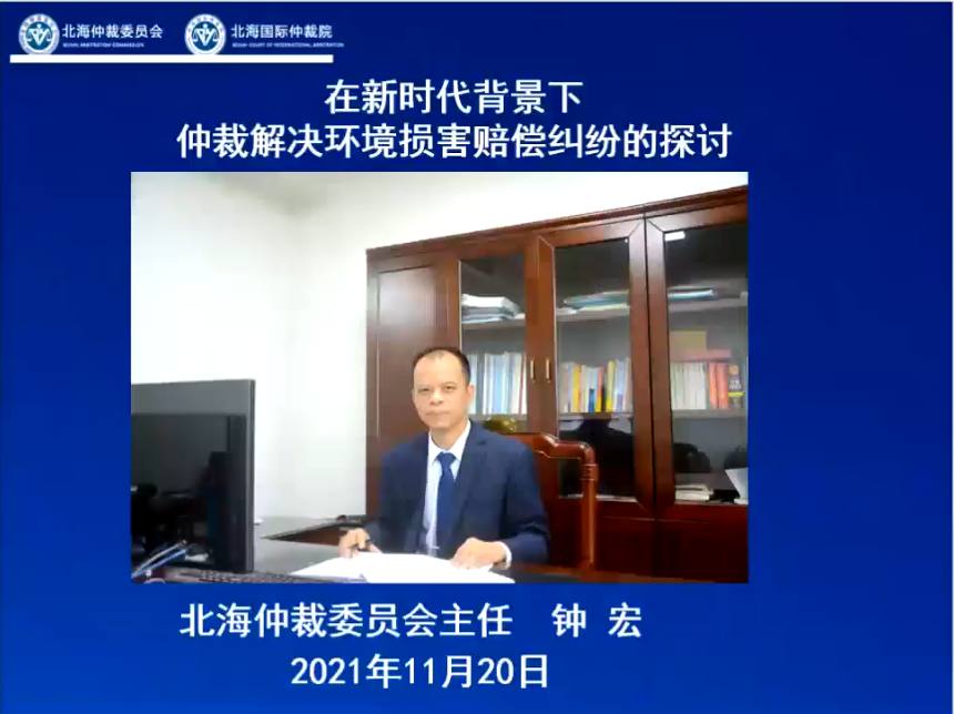 北海仲裁委员会钟宏主任以“在新时代背景下仲裁解决环境损害赔偿纠纷的探讨”为题进行分享。他指出,我国现有的协商、调解、诉讼等环境损害赔偿纠纷机制存在局限性,进而分析了环境纠纷中适用仲裁机制的可行性。他提出,仲裁具有独特价值,并详细论证了仲裁在环境损害赔偿纠纷的具体适用。
