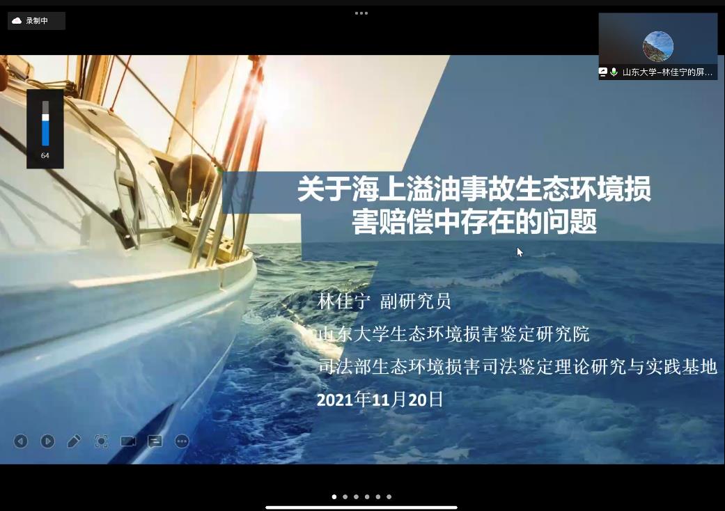 山东大学生态环境损害司法鉴定研究院林佳宁副研究员围绕“海上溢油事故生态损害赔偿”展开汇报。她详细介绍了黄海“412?交响乐”轮溢油事故的具体情况,并通过与国外溢油事故损害赔偿典型案例的对比,指出我国高额的索赔费用和低额的责任限制基金限额存在冲突。她建议,应当通过法治方式化解上述矛盾,实现生态环境利益保护。