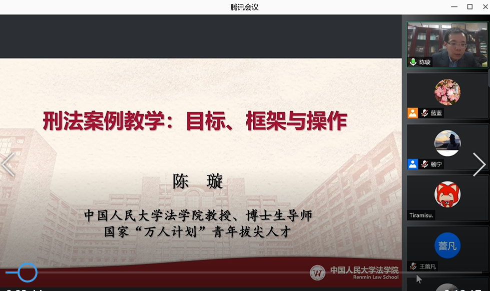 (通讯员 封梦媛)11月11日晚,天津大学法学院教育教学改革系列活动专题讲座开讲。本次讲座的主题是“鉴定式案例分析方法:目标、框架与教学”,主讲嘉宾是中国人民大学法学院教授、博士生导师、国家“万人计划”青年拔尖人才、中国人民大学“杰出学者”青年学者(A岗)陈璇教授。天津大学法学院副院长蓝蓝主持讲座,来自天津大学法学院及兄弟院校的师生共80余人线上参会。