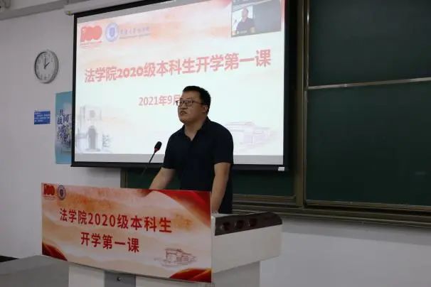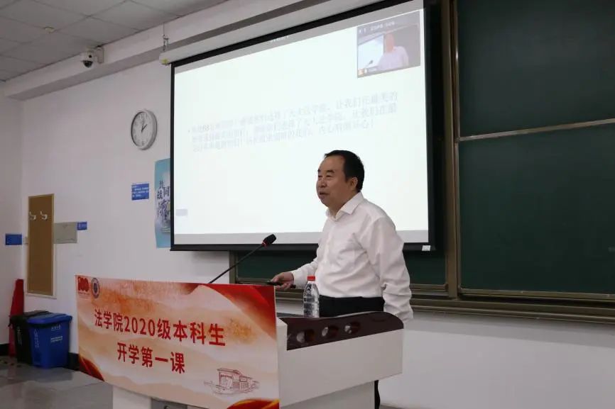 (通讯员 娄傲兵 摄影 俞清彬)为引导2020级本科生尽快适应法学院的学习和生活,熟悉法学专业学习特点,9月8日下午,法学院院长孙佑海教授围绕“如何开展法学专业学习”主题,为法学院2020级本科生带来了生动的开学第一课。学院2020级本科生班主任曾艳、弭维,团委书记曹云吉,团委副书记张斯琦,本科生辅导员付常辉和75名2020级本科生共同参加学习。第一课由学院党委副书记、副院长张昊主持。