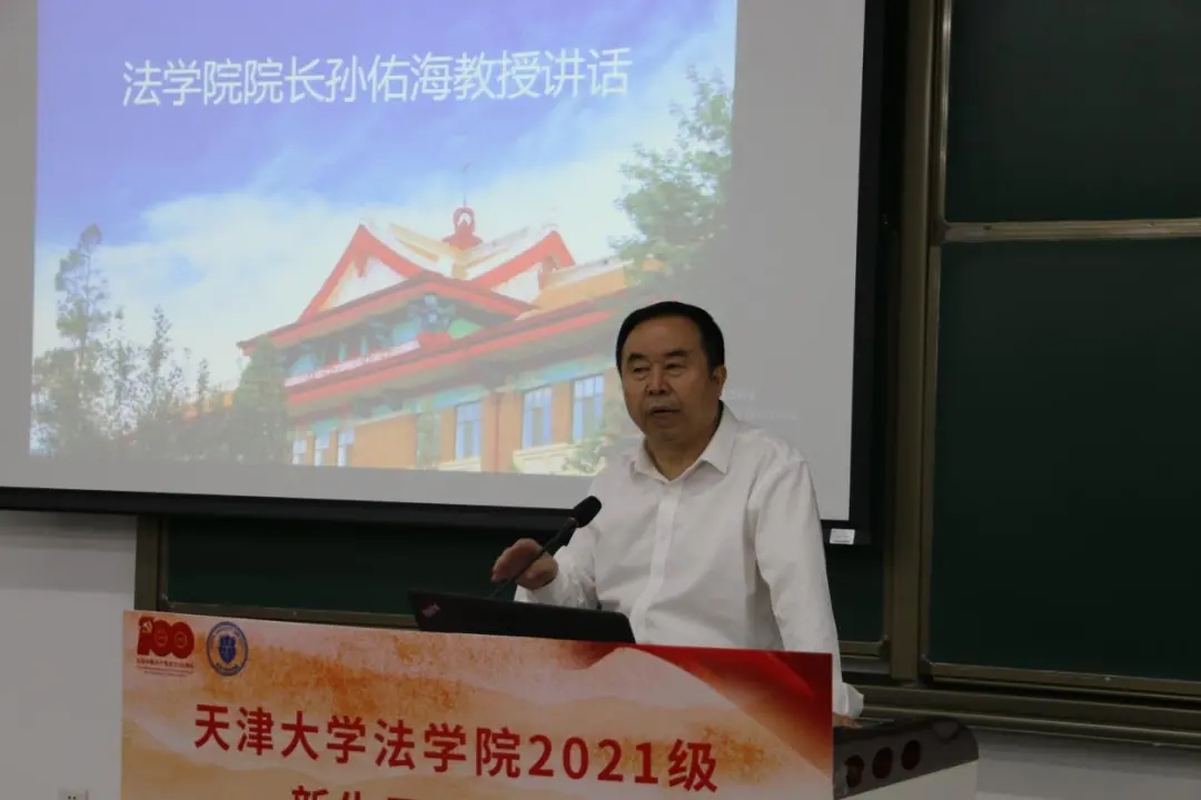(通讯员 周新垒 左子腊 摄影 周新垒)金秋九月,丹桂飘香。9月3日下午,天津大学法学院2021级研究生开学典礼在第23教学楼108室隆重举行。天津大学法学院院长孙佑海、副院长蓝蓝、副院长杨健、法学院教研组组长和教师代表张恒山、王建学、董娟、俞风雷、刘霜、王小钢、王绍喜、薛杨、田亦尧、曹云吉,院办公室于艳春、杨瑷嘉,院团委、学工办张斯琦、付常辉出席开学典礼。典礼由法学院党委副书记、副院长张昊主持。