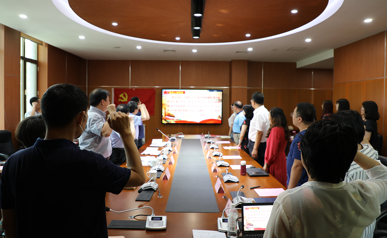 首先,全体与会党员共唱国歌。随后,由党委书记杨欢带领全体与会党员重温入党誓词,面向党旗,庄严宣誓,牢记党的初心和使命。